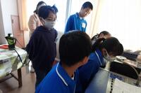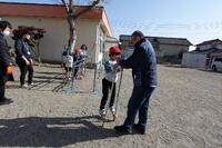 上級生が、下級生の後ろでそっとタイミングを教えています