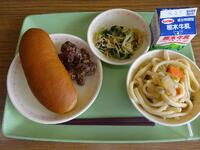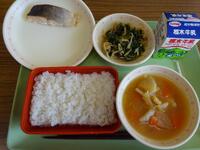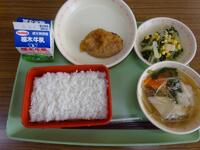 今日 は、給食 の始 まりの献立 です。給食 が始 まったのは今 から137 年 前 です。当時 は、おにぎり、焼 き魚 、 漬物 のメニューでした。
