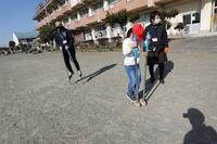 校庭では、竹とんぼ・凧あげ・竹馬を教えていただきました