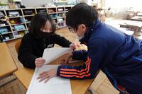 教科書の様々な絵をまねたり、興味のある漢字を使ったりして、オリジナルのクイズをそれぞれ作りました