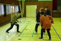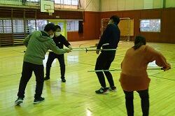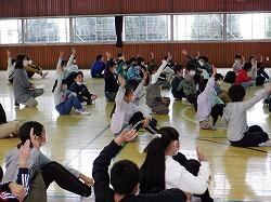 放課後の体育館で、教職員の校内研修を行いました