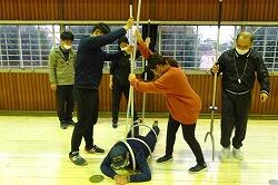栃木警察署から、スクールサポーター様と田村駐在所駐在員様をお招きして、“さすまた”の正しい使い方や不審者からの防衛・確保の仕方をご指導いただきました