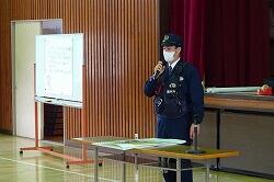 大声を出して教室に近づく不審な人(今回は、警察署員さんです)からどうやって身を守るか、警察官が到着するまでどう対応するか等の訓練をしました