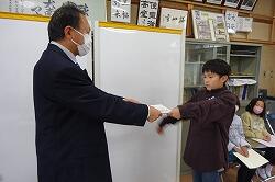 校長室では代表児童が授与され、代表以外の児童は教室のテレビを通して呼名され、担任から賞状を授与されました