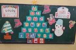 昇降口は、早くも「クリスマス」の掲示に衣替え