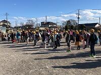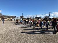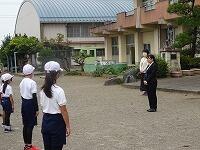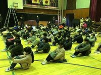▼昇降口前で、出発式