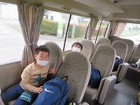 ▼バスの座席は一人ずつで、しっかり間隔を空けて…。