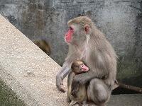 ▼ニホンザルの赤ちゃんが、お母さんのおっぱいを飲んでいて