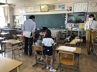 健康観察の取りまとめや、家庭との連絡業務、校舎内の換気や清掃・消毒などの感染症対策、配膳室の準備・片付け・清掃等の業務を中心にサポートしていただきます。全学年児童とのかかわりがあるので、業間の時間に体育館で「臨時集会」を行い、全校児童に紹介しました。