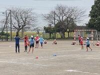 課外活動のハンドボールの練習をしています。4·5年生の中には、まだ少し疲れがとれていない子もいるようですが、みんな朝から集まって、頑張っています。