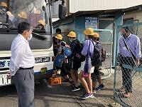 今日は、5年生の校外学習の日です。子どもたちは13名全員そろって、市有バスに乗って、元気に出発しました。