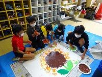 大南祭当日は、今日の下描きをもとに、手形でひまわりをえがきます。