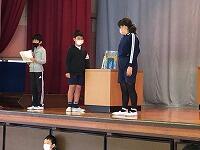 2月10日(水)の4時間目後に、体育館で表彰の伝達を行いました。全校児童が間隔をあけて並び、短時間で行いました。