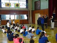 校外学習に出かける前に、1・2年生にも自己紹介していただきました。
