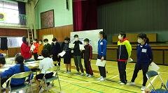 今日は、朝の活動の時間に、なかよし班ごとに体育館に集まって、その相談をしました。