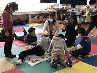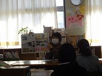 保護者の方には、お子さんと分かれていだだき、健診が終了するまでの待ち時間を利用して、図書室で「子育て講座」を開催しました。生涯学習課の家庭教育学級のご担当の方と、オピニオンリーダーCARPA(カルパ)の方々を講師にお迎えして行いました。例年は、保護者の方同士の情報交換や交流をしていただくプログラムなのですが、コロナ禍のため、短時間で交流の時間をとらない形に変更してくださいました。