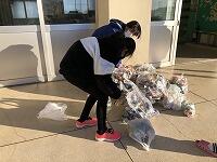 美化・ボランティア委員会の人たちが、缶をつぶしたり、エコキャップの袋を詰め替えたりする作業をしてくれました。