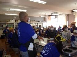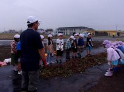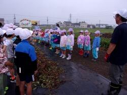 保育園年長さんと向かい合いグループ、ご挨拶をしてから、園長先生に芋掘りの説明をしていただきました会議・研修