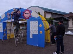 子ども達のひまわりの絵をはってくださった、素敵なアーチです王冠みんなの写真スポットにもなっていました星