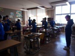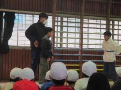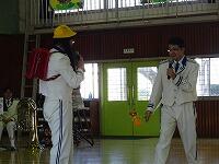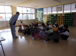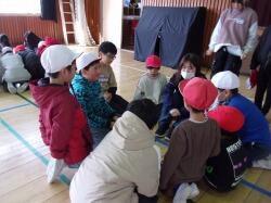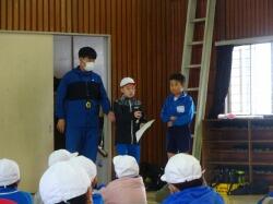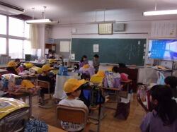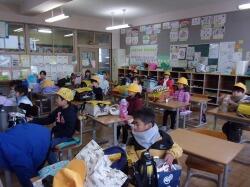 嵐まず、竜巻の避難訓練の様子をご覧いただきました。子どもたちは、素早く自分の身を守る待避行動を取ることができていました。委員の皆様にもお褒めの言葉をいただきました。ピース