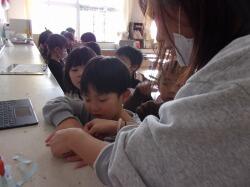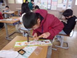 国語科の授業で、「しらせたいことを、みじかいことばであらわそう。」をめあてに、生き物や植物を観察しました。虫眼鏡子どもたちは様々な視点からたくさん気付き、短い言葉でワークシートに書くことができました。花丸