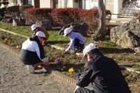 更生保護女性会の皆様からは、毎年、チューリップ球根をいただいており、校舎前の花壇に植えさせていただいています ピース春には、花壇に色とりどりのチューリップの花が咲きほこります興奮・ヤッター!今年も、栽培委員会の子ども達が、大切に育てていきますグループ
