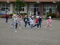 ケイドロ中、必死で追いかける1年生のために、走るスピードを落としていた5・6年生。