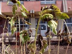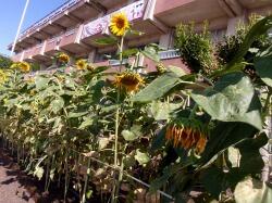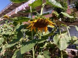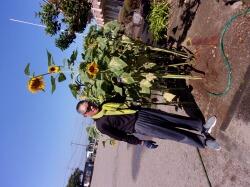 1番背の高いひまわりは、技能員の先生より、こんなに大きく成長しました