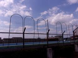 教頭先生が、暑い中、プールのフェンスに手作りの網を高くかけてくれました