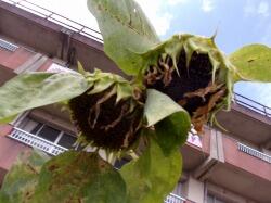 ひまわりは、少しずつ花びらがとれて、種がみえてきました