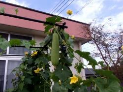 校庭の花壇の花も暑い中ですが、頑張って咲き、子ども達が世話してくれるのを待っていますヒョウタンやヘチマも大きく大きく実っています