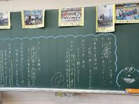 教室では、担任の先生からのメッセージが子どもたちを迎えていました。