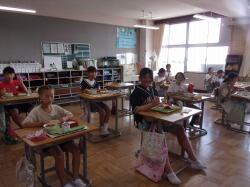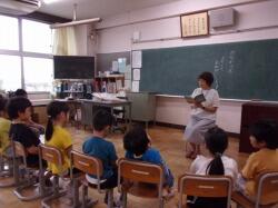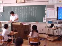 まず、1年生と4年生の代表児童が作文を発表してくれました。1学期を振り返って、 がんばったことなど、堂々と自分の思いを発表することができました。