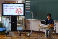 始業式は今回も熱中症対策のため、ふれあいルームからオンラインで、各教室をつないで行いました。