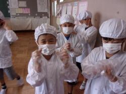 給食 では塩分 ゼロうどんを使 っています。なぜなら、塩分 のとりすぎは、高血圧 を引 き起 こし、病気 のもととなるからです。子 どものうちから気 を付 けましょう。