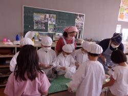 雷汁 は、豆腐 を炒 めるときに、「バリバリ」という音 がして、雷 のように聞 こえたことから、名 づけられたそうです。今日 の雷 汁 も、給食室 でバリバリっと大 きな音 をたてて炒 めて作 りました。