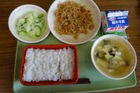 じゃがいもは、栃木農業高校 で栽培 されたものです。みそ汁 の具 としてでています。地元 の味 を味 わいましょう。