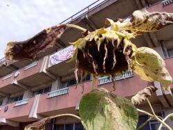 今日のひまわり。たくさんの種が取れそうです二学期には、なかよし班で種取りしましょうね
