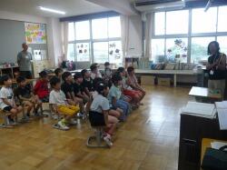 児童の皆さんは、お話を集中して聞くことができていました。 よいスタートです。