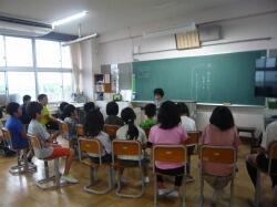 児童の皆さんは、教室で集中してお話を聞いていました。