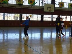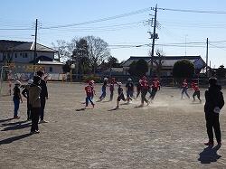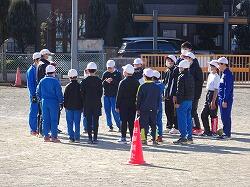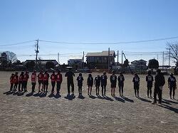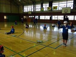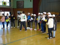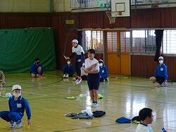 はじめに、体を温める練習を行い、続いて校庭で試合をしました