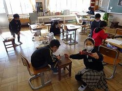 ↓↓3年生・4年生:釘を打ったり金槌で叩いたりしながら、木材を使った作品を作っていました。下の階(ちょうど職員室)まで、軽快なハンマー音が響いていましたよ