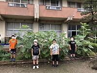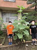 葉っぱも、ものすごく大きくなっていて、手を広げて何人分ぐらいだろう…と、楽しく大きさ比べをしていました。