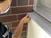 ▼校長室の窓の下まで上って、ぶら下がっている虫も発見!!