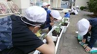 今朝のひまわり当番は、3年生…元気な3年生が、ひまわりと「おはよう」のあいさつをしに、校庭に出てきました。