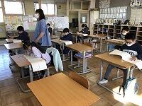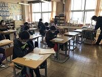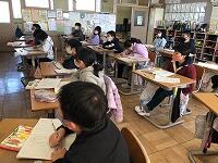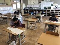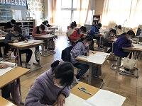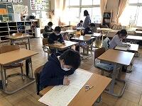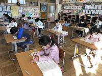 本日放課後、「日本漢字能力検定(略して『漢検』)」を行いました。これは、数年前から小規模校ならではの取組として行ってきたものです。今回は、体調不良等で欠席もありましたが、1年生から6年生までの児童と、そのご家族合わせて56名が受検しました感染症対策も考慮し、7教室に分かれて、10級から準2級までの検定を実施しました