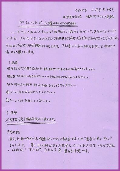 来年度のPTAリサイクル活動へのご協力も、よろしくおねがいいたします