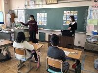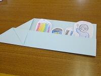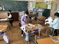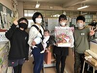 先生方へのプレゼントを届けに職員室に来ていた6年生に受け取ってもらって、養護教諭の先生に「BOXティッシュカバーとメッセージカード」をプレゼントして…一緒に記念撮影