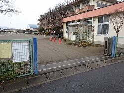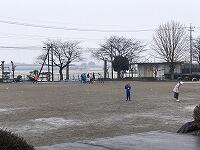 ↓↓1時間目が始まった頃の校庭の様子(職員室付近から見た様子)です。隅の方に、うっすらと積もり始めました。