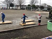 それぞれの発達の段階に合わせて、「なわとびカード」を活用して、持久とびや技能とびの練習を重ね、自分の目標に向かって挑戦しました。休み時間や昼休みなどには、ジャンプボードが大繁盛になるぐらい、よく練習をしている姿が見られました。「たくましい子」「やりぬく子」に、また一歩近づいたことを確信しました。